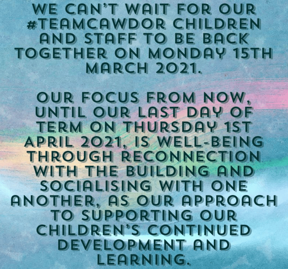 Have a lovely weekend and we will see our Team Cawdor children and staff on Monday!
