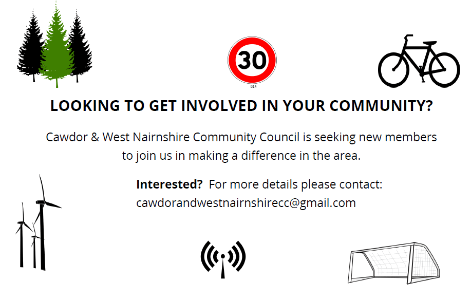 The Cawdor & West Nairnshire Community Council is seeking new members to join them in making a difference in the area.